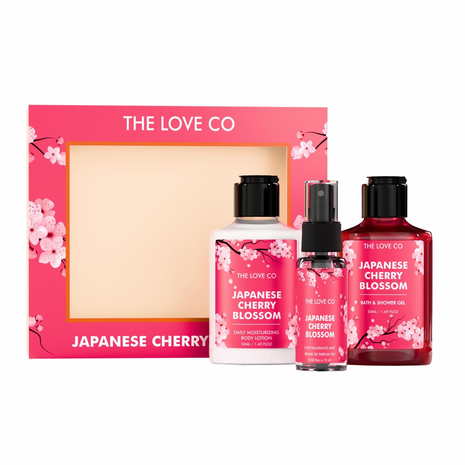 THE LOVE CO. Japanese Cherry Blossom Bath and Body Care Gift Set Box | Body Wash, Body Lotion and Mist